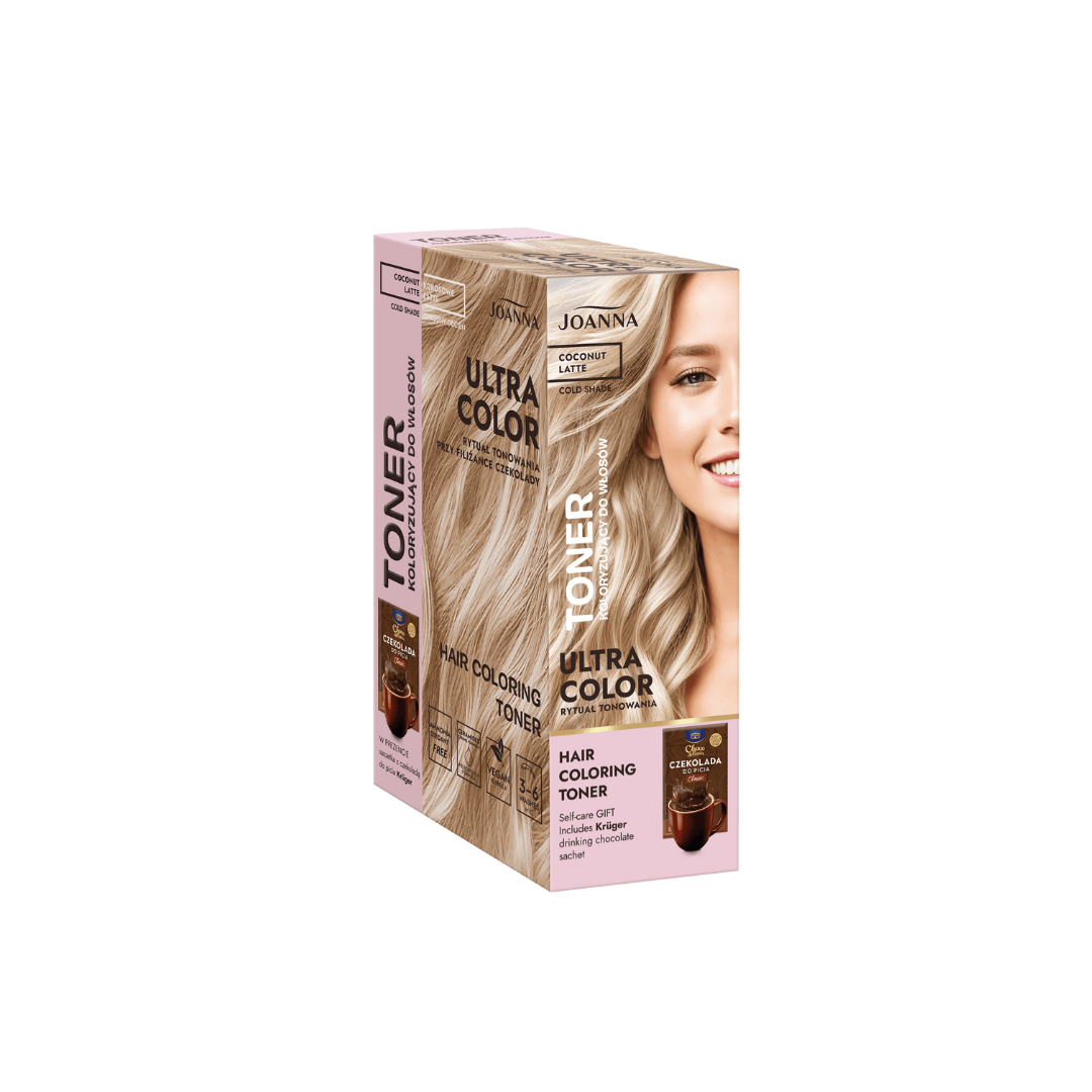 Ultra Color toner do włosów w odcieniu Coconut Latte to chłodny, srebrzysty blond pełen blasku.